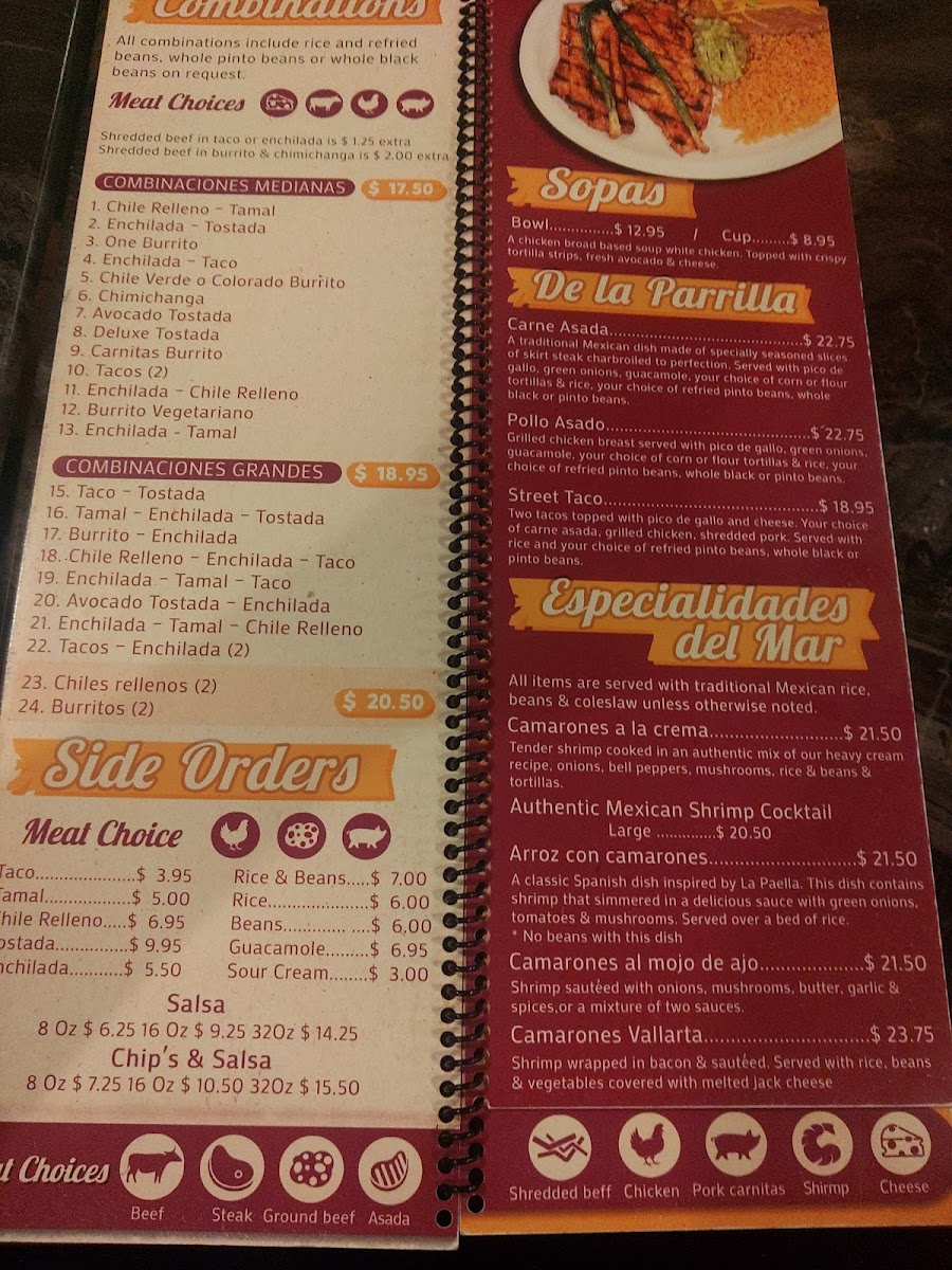 Start your journey with Nachos Supreme, where crisp tortilla chips are heaped with beans, melted cheese, and your choice of tender meats. For something heartier, indulge in our specials like the Burrito California, packed with charbroiled steak and accompanied by zesty green salsa. Seafood lovers will delight in the Burrito Cancun, brimming with crab, shrimp, and chicken, all smothered in creamy mushroom sauce.